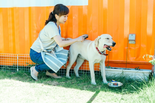 ワンちゃんの場合は、お客様と一緒にお散歩コースを回らせていただくこともあります。
